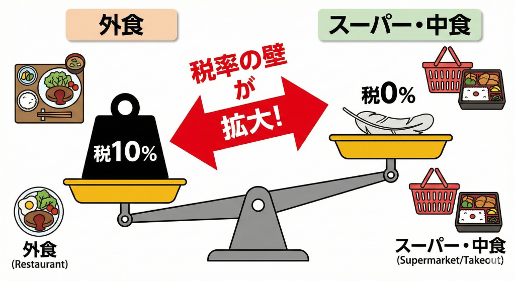 | スーパー・中食 | 勝利 | 外食との税率差(10%)が追い風となり、利用頻度が激増する。 | 【主力維持】 生活防衛の要(かなめ)として、ガチホールド継続。 |